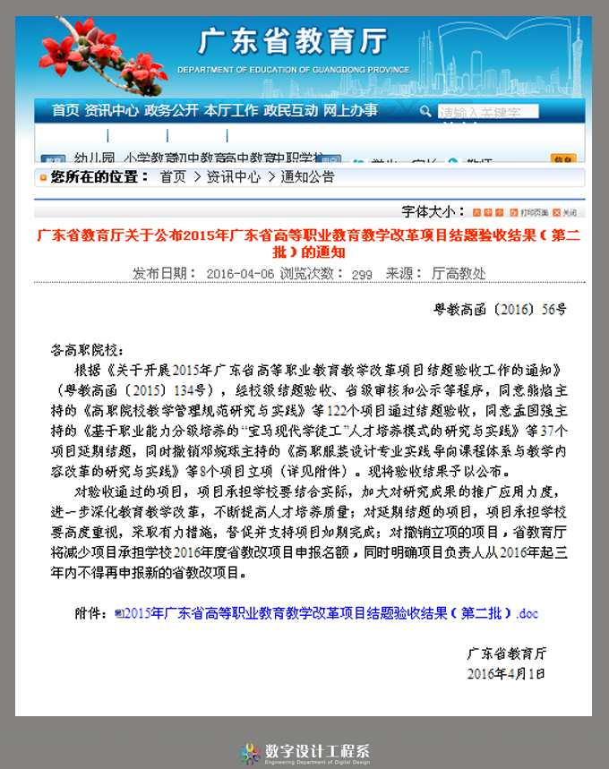 广东省教育厅关于公布2015年广东省高等职业教育教学改革项目结题验收结果(第二批)的通知