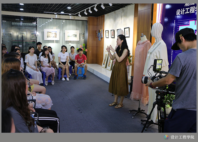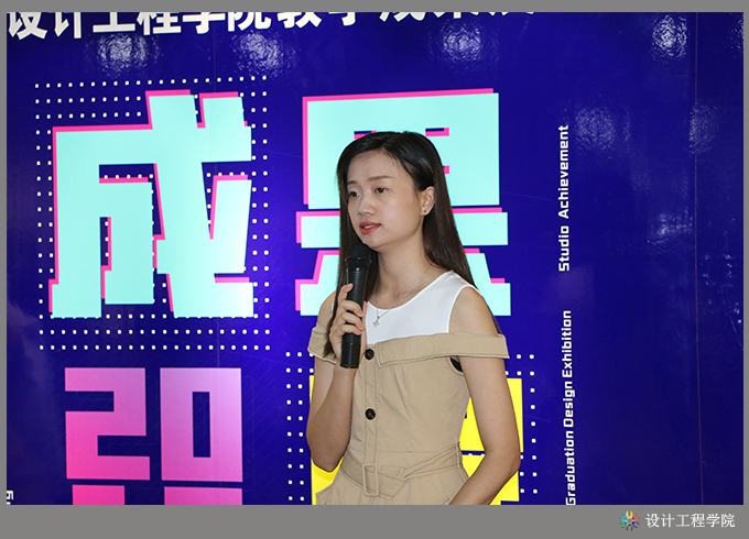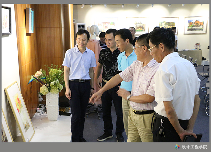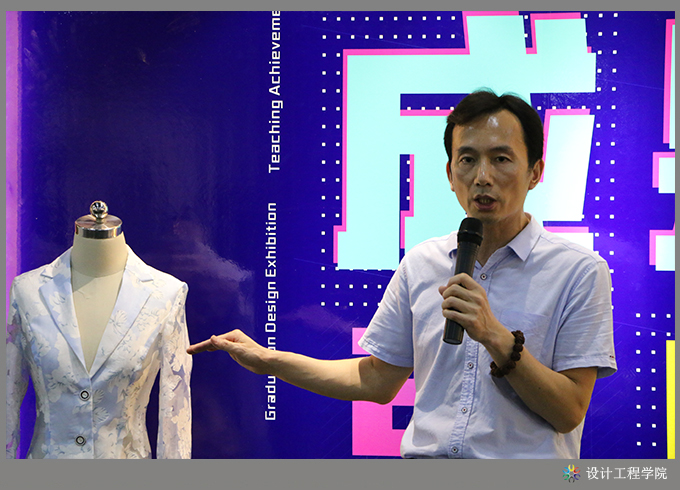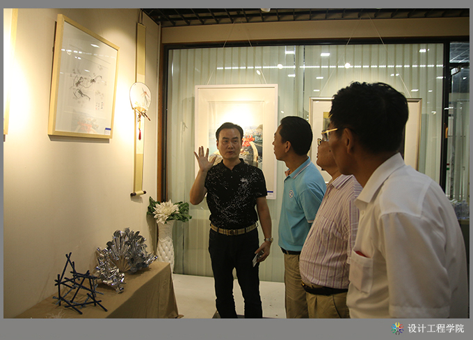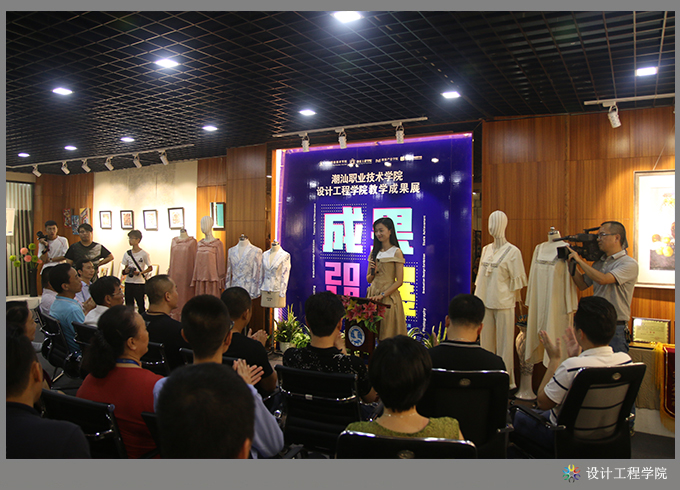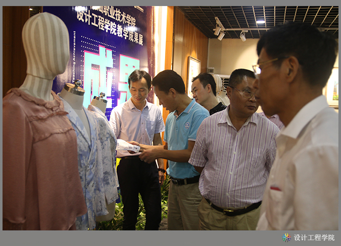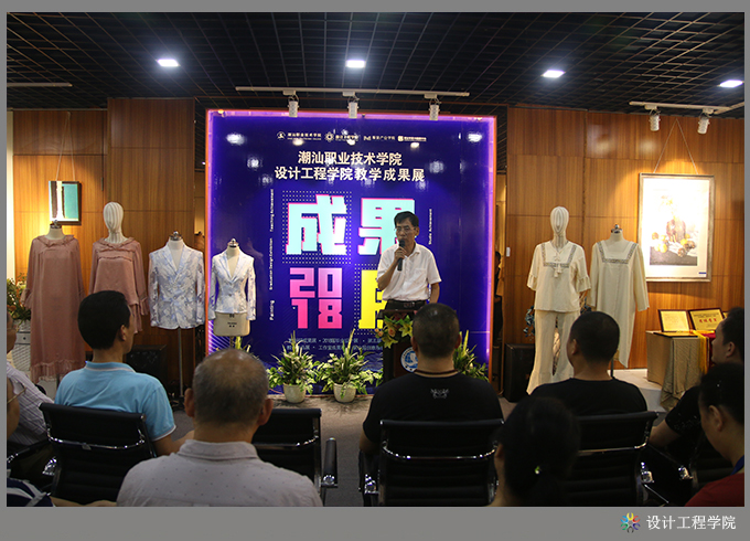 首先,设计工程学院黄海宏院长对本次教学成果展情况作汇报。他分别从教学模式改革、专业特色创新、校企合作、产学融合等方面进行了介绍,重点介绍了如何以地方产业为依托,以大师工作室为手段,实施现代学徒制教育教学,以及开展校企合作,实施公司化教育教学人才培养模式等改革实践中所取得的各项成果。此次教学成果展览,共展出教科研成果17项,其中科研项目1项、教研课题4项、论文6篇、教材3本、国家发明专利3项;省级以上各类技能竞赛获奖教师组7项、学生组9项;毕业设计作品141件,其中室内艺术设计专业120件、工业设计专业21件;第六届服装设计大赛获奖作品10组共48套;工作室教学成果:VR建模中心家装设计11套(含VR360度全景图)、服装研发中心精选家居服20套、无框大师工作室精选2套具有国家发明技术专利的男女西服;第五届摄影大赛获奖作品28幅;课堂学生作品手工饰品等近200件,教师绘画作品30余幅、摄影作品80多幅。以及组织学生参与各类活动所取得的成果10余项。