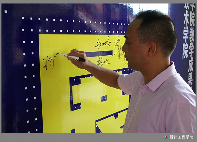 接着,学院党委书记、执行院长齐广武在致辞中讲到,设计工程学院这一年来所取得的各项教育教学成果是丰硕的,内容是丰富的,既有各种技能竞赛的,又有活动组织的,还有校企合作共建的……,这些成果中有学生的学习成果,也有老师的教科研成果,是值得庆贺和推广学习的。齐书记对这次教学成果展的成功举办表示祝贺的同时,他也代表学院领导对一直关心和支持设计工程学院专业建设和创造优秀教学成果而努力的各位嘉宾、领导、老师、同学们表示感谢;他也希望参加开幕式的全体师生要利用这次展览为契机,多交流,多学习,不断的改进和提升,争取更大进步和创造更多的教学成果,为早日实现“创业名校,就业名校”增色添彩。