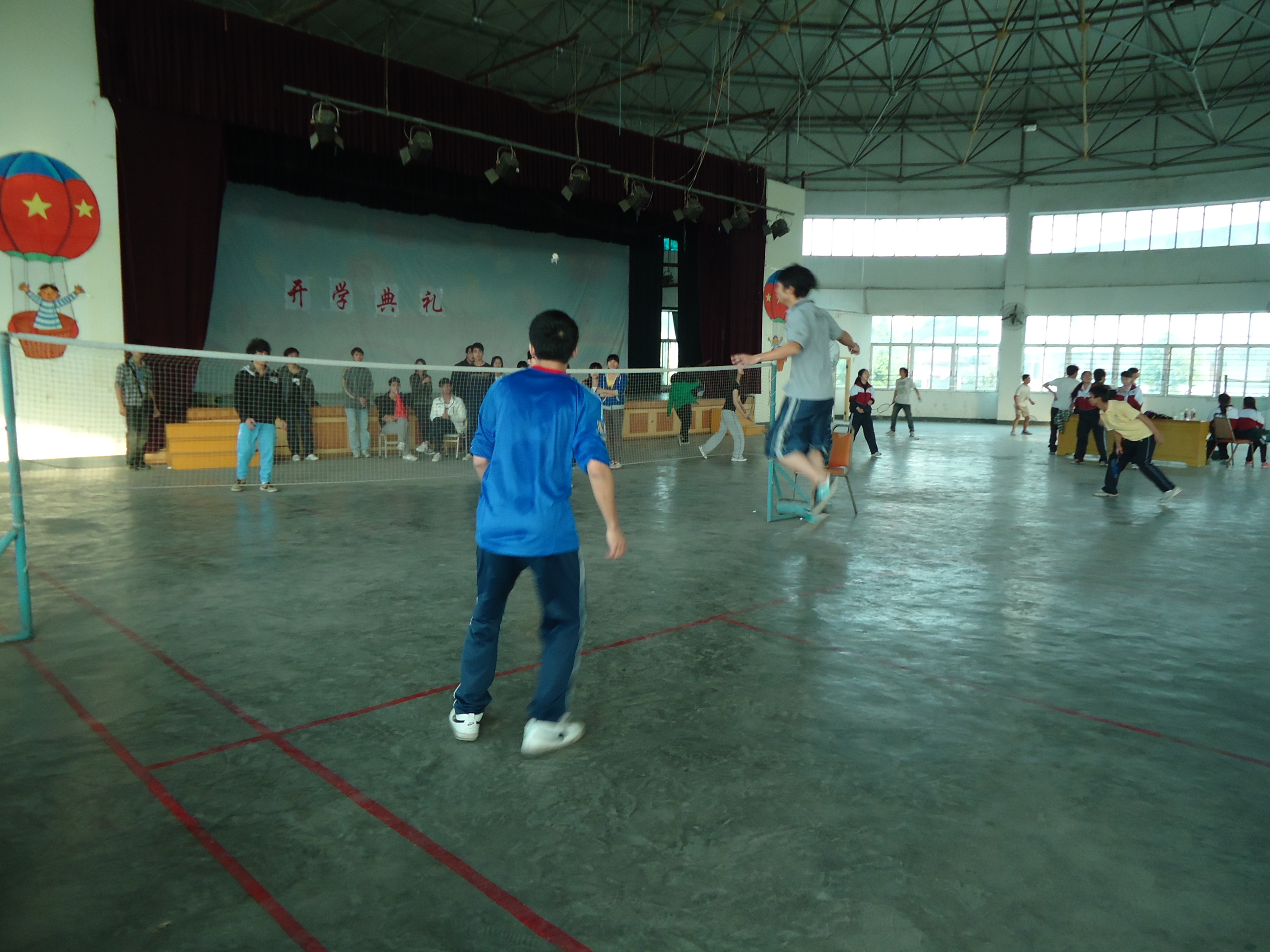 毽球比赛,赛出风采 经过一个多星期的激烈竞争,由院团委学生会体育部举办的毽球比赛,终于迎来了激动人心的时刻。2011年3月31日下午,毽球比赛在校园礼堂里开展了总决赛。四支参赛队伍各显其能,场面异常的火暴。最终,经贸系A队勇夺冠军,计算机A队位居第二,管理系B队第三。 学院领导、老师,团委学生会主席、干部、干事,以及众多的学生观众在现场观战。这次比赛,让同学在紧张的学习之余,放松心情,增加了同学们体育锻炼意识和竞争意识。