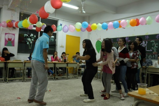 晚会开始,首先由指导老师朱捍卫老师为我们讲话,朱老师交代了工作的事情和表达了对我们光棍节的祝福,朱老师语重心长的讲话,让我们受益匪浅。接下来由谢光辉老师为我们讲话,谢老师带来了好消息:“今天晚上不断电、不停网”,此言一出让我们热血沸腾起来!晚会中,我们齐唱《单身情歌》,心有灵犀一点通、连环爆破、老鹰捉小鸡等精彩游戏令晚会高潮一浪接一浪。我们玩成一片,气氛不断在升温。