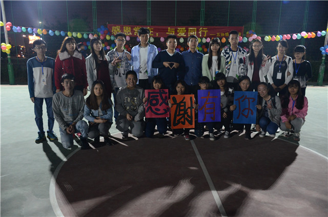 11月26日晚,由我院物流协会、梦之舟文学社、心理协会、尚武社、远航演讲协会联合举办的“感恩常在,与爱同行”感恩晚会在篮球场隆重进行。出席本次晚会的嘉宾有物流协会指导老师吴金莉以及24个协会的会长团。 晚会由物流协会带来的《如果爱》拉开序幕,动人的歌声赢得阵阵的喝彩与欢呼声。紧接着是文学社的诗歌朗诵,悠悠的语调缓缓地诉说着心中的感恩之情,让我们想起远方的家人和生活中那些平凡却又触动人心的事情。心理协会带来的手语表演更是为现场观众展现了一种无声的力量,整齐划一的动作满载着他们的心情,冲击着我们每个人的心灵。 感恩节,就是让我们用眼睛去看、用耳朵去听、用心灵去感受,从而在自己的心中培植一种感恩的情感,对待任何人都能以一颗感恩的心去面对。本次晚会的成功举办,不仅肯定了协会之间相互协助的默契以及协会间的团结,也体现了同学们的热情与积极的参与。同时,晚会也将感恩的主题演绎得淋漓尽致,让我们明白:生活是一面镜子,你哭它也哭,你笑它也笑。当你心存感恩,生活也将赐予你灿烂的阳光。 主持人 诗歌朗诵 手语表演 集体合照 (摄影:陈冰蕾、曾晓云) (责任编辑:吴晓祈) |