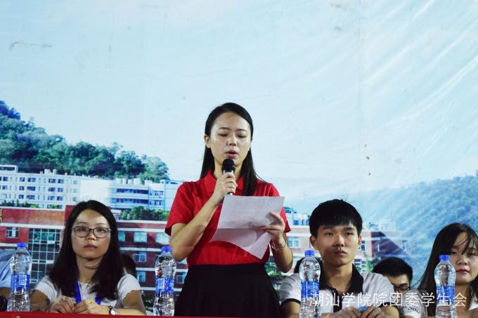新生已军训六天,学院对于新生的思想品德教育尤为注重。大学是我们人生中必走的过程,在大学,我们可以学到很多我们以前未学过或者学过加强了的知识与社会经验。2016年9月17日晚上,潮汕学院团委举行团委及学生组织介绍大会,出席本次大会的嘉宾有学生处处长、团委书记王克明,团委副书记钟逍彬,团委老师董力铭等领导老师及六大版块主席团全体同学。 整场大会由团委副书记钟逍彬主持,钟书记向2016级新生介绍了团委机构及成员,我院团委机构共有六大版块,分别是院团委学生会、社团联合会、星际艺术团、广播站、记者团、招生志愿者服务队。紧接着,由各学生组织主席团发言亮相,介绍版块部门的优点,希望大家踊跃报名参加。最后,大会在团委书记王克明讲话中结束,王书记鼓励新生勇于尝试,积累经验,最终以优秀的姿态步入社会。 我院希望新生能够勇于表现自己,展现自己,在大学里活的精彩,过得出色,以最饱满的姿态显露于社会众人面前,希望同学们加紧脚步,在接下来的日子选择出最适合自己的道路。愿新生在以后的道路上一帆风顺,学业有成;学院往更高的一层阶梯发展。 ![]() 团委书记王克明发表讲话 ![]() 团委副书记钟逍彬主持 ![]() 院团委学生会主席罗梦怡发言 ![]() 大一新生 (摄影:吴晓祈) (责任编辑:吴晓祈)