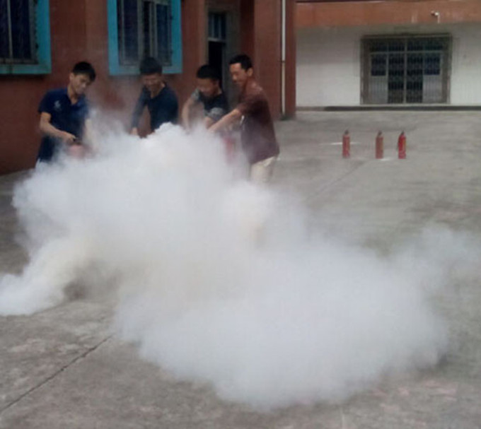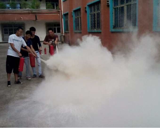 演练之后,由专人分别演示和指导学生如何正确使用干粉灭火器和泡沫灭火器的方法,并掌握两种灭火器适应哪种火灾,进行了实际操作灭火。