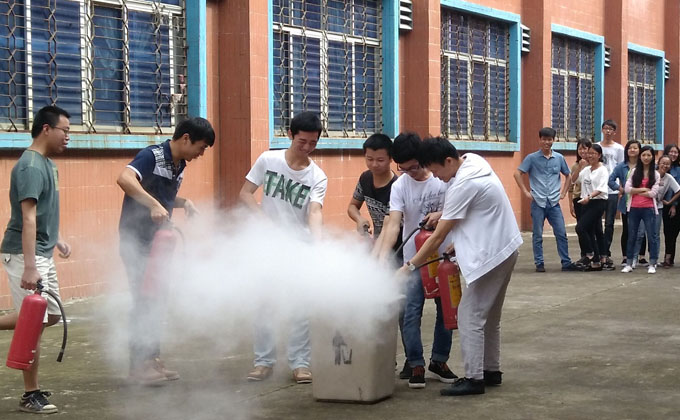 ![]() 实训学生作消防演练