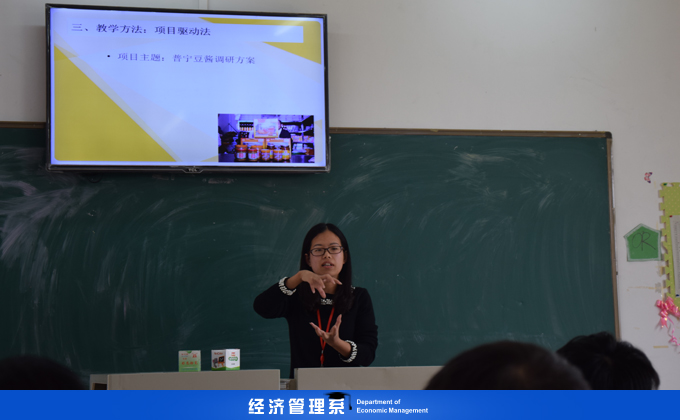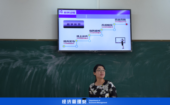 依据学院粤潮院【2016】6号文件关于加强实践性教学,开展“三提高”活动的通知,经管系于星期三下午在X203举行教师说课比赛决赛。由主任助理李冕鸿和三个教研室主任曹凯老师、吴金莉老师、李宝苏老师组成评委团对教师说课进行了评分。 本次有5位老师参加系部说课比赛决赛,他们分别是管理教研室的陈慕莹老师、林盛伟老师、胡方昌老师,物流教研室的李娜老师和建筑教研室的谢彪彪老师。比赛过程中,参赛教师展示了自己的教学水平,先进的教学理念、新颖的教学方法,彰显了我系教师良好的教育教研能力和专业素养。最终以得分高低,推荐陈慕莹、李娜、胡方昌三位老师参加学院说课比赛。接下来我系将对这三位老师进行进一步培训和指导。 此次系说课比赛决赛,促进了我系教师在教学专业能力上的提高,同时也让我们深深体会到经管系每一位老师对于课堂教学的辛勤付出。 ![]() 全体教师合影留念 ![]() 教师说课现场