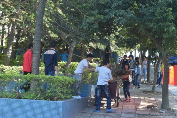 动员全体大一学生对全校环境卫生进行大扫除活动。