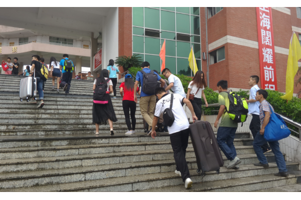 秋风送爽,丹桂飘香。9月11日-12日,是潮汕学院2015级新生的报到时间,潮大校园一派喜庆忙碌景象。 11日早上七点,学院迎新工作正式拉开帷幕,虽然下着蒙蒙细雨,但随着新生的到来,学院的领导、老师、干部以及各系志愿者仍带着热情的微笑,耐心的讲解,真切的关怀,欢迎着来自祖国各地的莘莘学子。同时,我院各部门各系的志愿者热情地从家长和新生中接过行李物品,带领新生到各系接待处签到、办理入学手续且引导新生到宿管处办理入住登记等等。 各院系积极行动,精心安排,在“一切为新生服务,让学生满意,让家长放心”服务思想的指导下,以一些充满人性化的举措让新生尽快熟悉大学新环境,适应校园新生活。 珍惜新起点,笑迎新生活。在领导的指导下,我院的第一天迎新活动圆满成功。在红色条幅,人性化的指示牌下,面带微笑、热情服务的志愿者们井然有序地接待,满脸喜悦、充满期待的新生和家长喜不自禁,整个校园沉浸在喜庆和欢乐之中…… 迎新现场 咨询处
