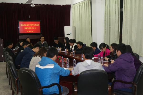 本次发展转正大会主要有两项议程,一是审议表决欧思婷等12位预备党员的转正问题;二是审议表决潘泽大等11位发展对象拟发展预备党员的问题。我支部严格按照程序,要求11位发展对象和12位申请转正的同志对自己一年以来的思想、学习、工作、生活等方面进行了全面的汇报和总结。他们的培养联系人和入党介绍人分别向大会汇报了其培养考察对象的情况,对即将被吸收为发展对象和转正的同志做了客观公正的评价,在肯定优点的同时也指出了不足,这些意见和建议将对这些同志今后的发展起到积极的影响。最后到场的全体正式党员进行了举手表决,支部委员钟逍彬同志宣布了投票表决结果,并宣读了本次党员大会决议:同意吸收潘泽大等11位同学为中共预备党员,同意欧思婷等12位同志按期转为中共正式党员。 随后,学生党支部书记王克明做了总结讲话。王书记首先代表党支部对成功发展和按期转正的同志们表示了热烈的祝贺,接着回顾了这一学期的党建工作,对支部同志本学期来积极参加各种党内活动表示肯定。王书记对在场的学生党员在几个方面做了强调:一是注重党性修养,组织上入党一生一次,思想上入党一生一世。要付诸行动,不要只说不做;二是注重思维,要有自己的想法;三是感恩,对辅导员、对母校、对祖国要有感恩之心。关注学校网站、微信、公众号,向师弟师妹还有广大同学们传递正能量。希望各位同志能继往开来为母校发展、为实现中国梦做出应有的贡献。 预备党员发展大会 会场全景 摄影:吴晓祈