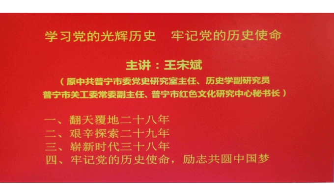 5月14日下午,潮汕学院第41期培训班“学习党的光辉历史,牢记党的历史使命”专题讲座在综合楼第二学术报告厅举行,原中共普宁市委党史研究室主任王宋斌担任此次讲座主讲。 课上,王宋斌主任讲述了有关中国翻天覆地二十八年、艰辛探索二十九年、崭新时代三十八年的有关历史事件和中国共产党成立95年来艰苦奋斗的历程。呼吁广大大学生应当树立远大理想和信念,勇担历史责任,树立爱国主义精神,坚定地走中国特色社会主义道路;坚持刻苦学习拓宽视野,坚持敢于奋斗,从小事做起;积极创造条件,以党员的标准严格要求自己,从思想上入党。 本次党课培训,使同学们深入地了解了党的光辉历史,也坚定了同学们向党组织靠拢的决心。 主题 委党史研究室主任王宋斌授课 培训现场 审核:吴晓祈 谢波 摄影:王苑 编辑:李妙虹