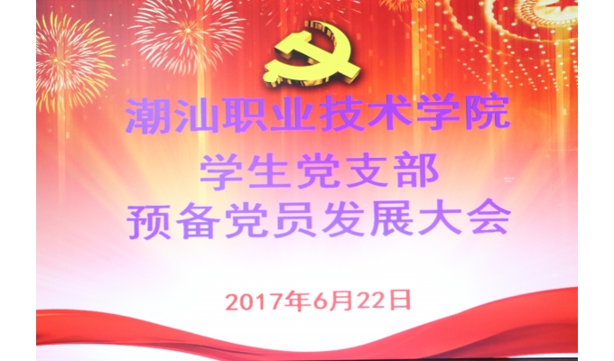 2017年6月22日晚,潮汕学院学生党支部在会议室召开预备党员发展大会,学生党支部全体党员出席,会议由党支部组织委员陈楠主持。