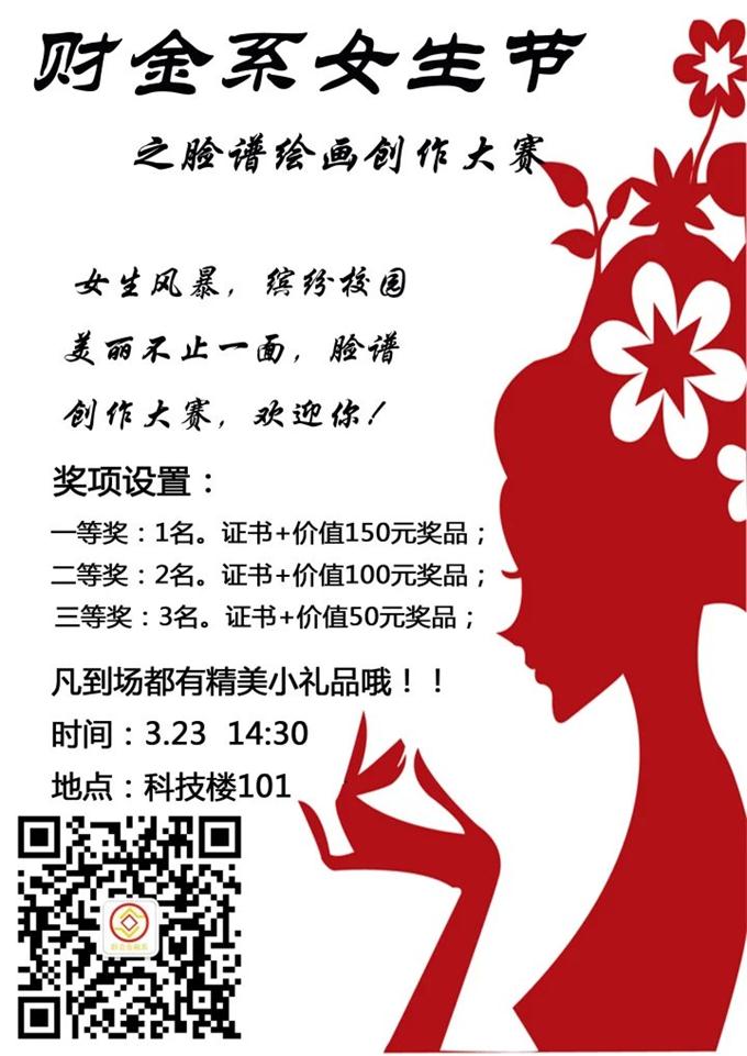 3月9日,以“女生风暴,缤纷校园”为主题的“脸谱”绘画大赛正式展开宣传工作。此次大赛,旨在丰富大学的校园生活,宣传中国传统文化,展示中国风采并号召全体学生在当今文化背景下勿忘经典,担负起时代赋予的弘扬中华传统文化的重任,通过亲自绘制脸谱,更深层次的去感受中国文化的魅力所在,将创意与个性浸入到脸谱创作上。有兴趣的同学请踊跃报名,展示你的独特风采。 ![]() |