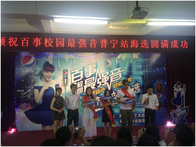 4月25日下午,财会金融系与星际艺术团携手百事可乐联合举办百事最强音普宁站海选。此次比赛以“张扬个性,打造音乐梦想”为主题,旨在带动校园文化的发展,培养学生艺术欣赏水平,展示艺术风采,提高艺术修养,丰富课余生活。 伴随着主持人激情的开场白,比赛以“好声音”冠军杨昊然带来的《空白格》拉开序幕,随后,选手们依次上台展示自己的歌喉,此次比赛的场面异常火爆,选手们怀揣着激情与梦想,用他们美妙的歌声感染着观众们的心灵,台下观众纷纷拍手叫好。 这次比赛展现了学子们多才多艺、健康向上的精神风貌,通过小小的舞台实现了同学们青春的梦想,在歌声中努力拼搏、天天向上。 ![]() (责任编辑:朱捍卫) |
