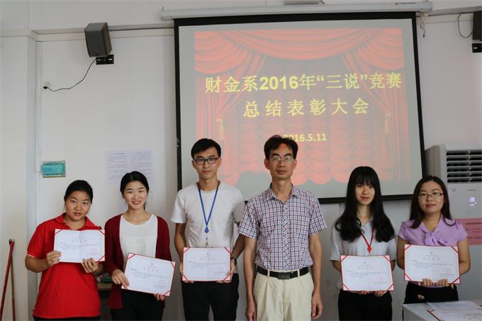 5月11日下午,我系在B509召开2016年“三说”竞赛总结表彰大会。 一等奖:方秀玲、蔡冰 二等奖:刘嘉星、杨程、蔡佩晓、陈红 在广大教师积极参与过程中,不仅有利于促进教师素质的提高,而且能够帮助教师们快速成长,进而大面积提高教学质量。