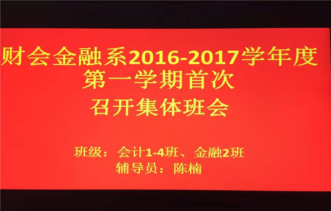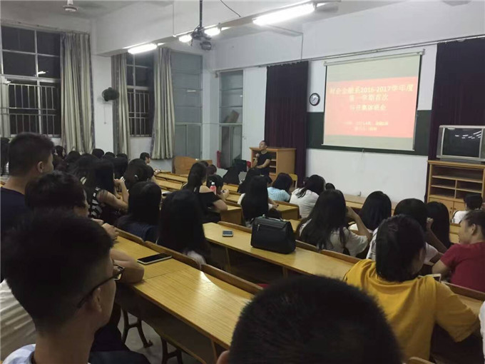 8月31日晚,我系在科技楼召开新学期第一次学生班会,本次会议由陈楠老师主讲。参加会议的成员有15级会计1-4班,金融2班。 主要内容包括: 一、班级荣誉高于一切,个人的成功需要一个优秀的集体,我们要齐心把我们的集体建设成为一个团结互助的大家庭。 二、遵守课堂纪律,珍惜课堂的每一分钟。 三、为自己的新学期做好学习计划、制定各科目标,力争上游。 四、严于律己,自尊自爱;业精于勤,持之以恒。 五、心怀感恩,尊师敬老;与人为善,助人为乐。 最后,陈楠老师寄语全体同学:新学期即将开始,大胆前行!相信自己,可以更优秀! ![]() ![]() 陈楠老师发表讲话