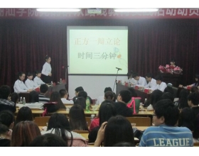2014年3月27日至28日晚上七点,我院第十一届辩论赛在科技楼101隆重举行。比赛邀请了老师及四大板块的主席与部长担任评委嘉宾,并吸引了众多同学前来观看,座无虚席。...