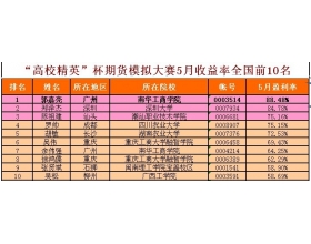 喜讯:我院学子获高校精英杯全国期货模拟交易大赛优异成绩 近日,从瑞达期货高校精英杯全国期货模拟交易大赛组委会传来喜讯,我院2010级学生陈祖伟同学以月75.16%收益率跻身全国第三名,同时另外有两名同学跻身全国前100名。我院学生继本次比赛4月份月收益率排名榜7名学...
