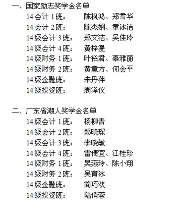 10月20日,经过一系列严格的讨论与筛选工作,我系13级、14级获得国家励志奖学金以及潮人奖学金的同学名单新鲜出炉,恭喜以下获奖的同学,希望在新的学期,同学们能戒骄戒躁,继续加油,也希望全体同学以获奖的同学为榜样,坚持不懈,在“德智体”方面全面发展自我,争取更大的进步。 ![]()