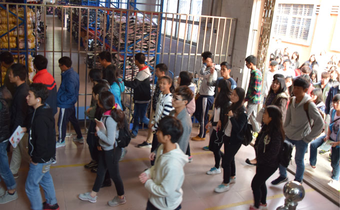 学生尝试机器操作