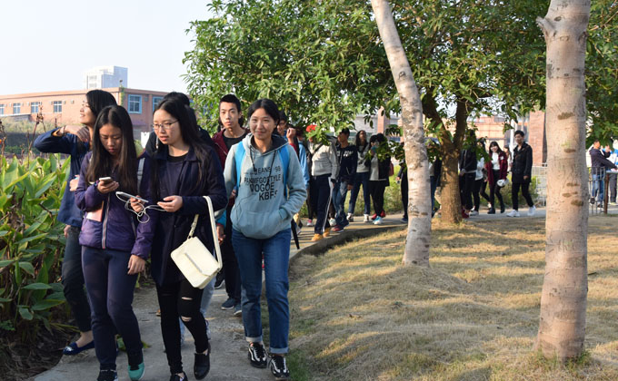 学生队伍进入基地参观