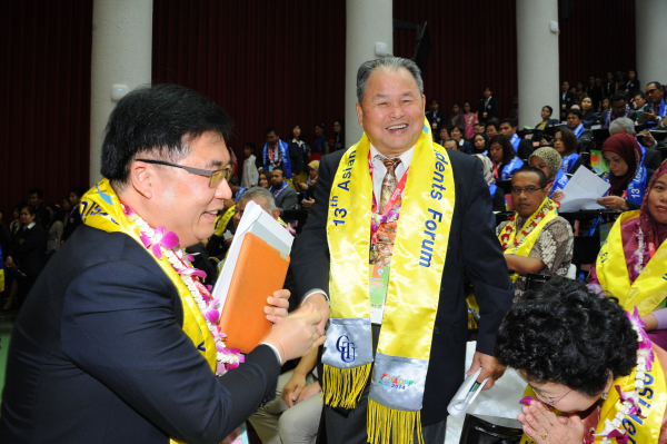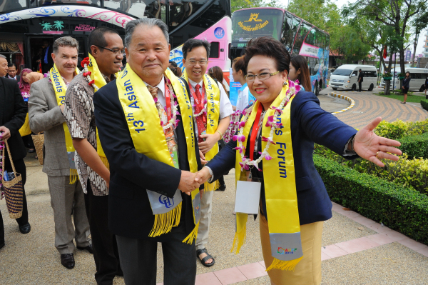 ![]() 10月22号早上,基督教大学校长—古几拉,热烈欢迎潮汕学院名誉院长庄明英、院长纪少游等一行人。 ![]() 第13届“亚洲大学校长论坛”开幕会上,主办方泰国基督教大学致辞并向论坛发起单位——潮汕职业技术学院表示感谢和致敬。