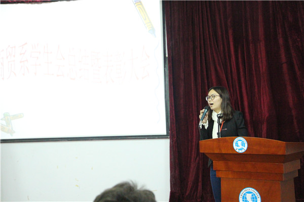 大会上,对于本学期表现优异的干部、干事及优秀部门进行表彰,优秀干事7位,优秀干部12位,优秀部门2个,分别是宣传部与学习部。随后由何建国、吴琪等优秀干事作为代表上台进行发言,讲述本学期学生会各项工作经历忙而且累,但是对于大学定位目标明确,大学生活充实并且快乐。最后,商务贸易系主任助理叶炳森老师的总结致辞并宣布商务贸易系本年度总结表彰大会圆满落幕。