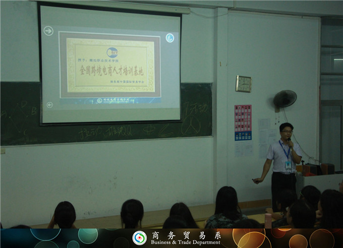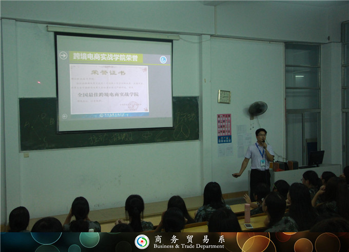 紧接着是专业老师对各个专业以及专业方向的介绍。首先由叶炳森老师介绍跨境电商实战学院,他以跨境电商实战学院成立时间为切入点、图文并茂的介绍了什么是跨境电商?跨境电商专业方向能学什么?以及跨境电商实战学院现主要学习的平台进行了介绍、包括跨境电商目前的就业前景等方面详细介绍,现场的新生们表现出极大的兴趣,气氛热烈。 ![]() ![]() ![]() ![]() 叶炳森老师介绍跨境电商实战学院 紧接着,庄映红老师介绍我系的商务英语专业,她从专业性质、专业建设及人才培养等方面详细介绍了该专业特色。 ![]() ![]() 庄映红老师介绍商务英语专业 随后,唐琛老师从中国旅游发展的现状出发分析了旅游管理专业的前景,并指出该专业的特色在于实践教学手段丰富,注重培养学生的实操能力。 ![]() ![]() 唐琛老师介绍旅游管理专业 刘艳红老师介绍我系国际经济与贸易专业,并介绍了国际经济与贸易专业的发展情况,与新生们分享了她个人对国际经济与贸易专业的看法和就业前景等,通过照片及文字让新生们对国际经济与贸易专业有了深刻的认识和了解。 ![]() ![]() 刘艳红老师介绍国际经济与贸易专业 我系学生会干部也简单明介绍了我系学生会,进一步让新生了解我系学生会,并希望能有更多的新生加入我系学生会这个大家庭,共创辉煌,建设美好的校园风范。 ![]() ![]() 学生会干部介绍商务贸易系团总支学生会 最后,商务贸易系副主任陈壁玲做了本次大会的总结并希望同学们把在军训中吃苦耐劳的精神发扬到今后的学习中,要求同学们在今后的学习、生活中要认真遵守学校的各项规定,处处严格要求自己,要珍惜大学时间,积极努力认真学习,争取以优异的学习成绩圆满完成自己的学业,努力争做优秀的大学生。 ![]() 副主任陈壁玲讲话 大会结束后,跨境电商实战学院师生有序的组织新生们到综合楼B403至B405跨境电商实战基地进行了参观,基地的学员对新生表示了欢迎并对新生提出的问题一一做了解答,许多新生对跨境电商实战表现出浓厚的兴趣。 ![]() ![]() 新生参观跨境电商实战学院 |