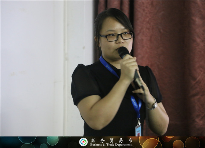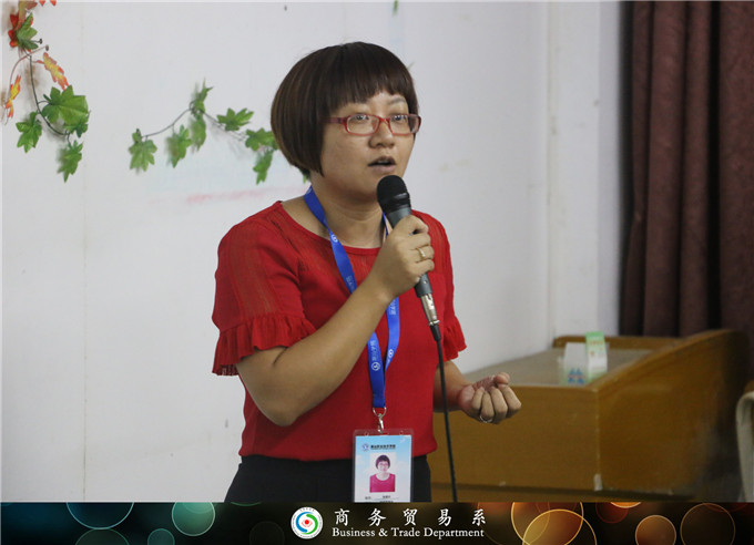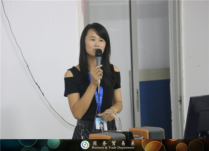 王洁梅老师首先代表商务贸易系、跨境电商实战学院全体师生对2016级新生的到来表示热烈的欢迎,并对商务贸易系的发展、专业设置、师资力量以教学环境等向同学们做了一一的介绍。