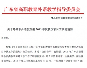 2013年3月份,广东省高职教育外语教学指导委员会组织开展2013年度广东省高职教育外语教学指导委员会教学改革项目申报工作,我院外语外贸系积极组织申报。...