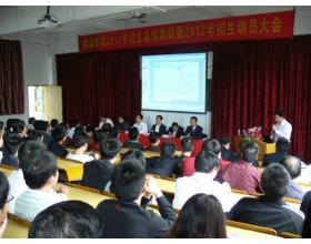 11 月 25 日 下午,我院全体教职工在科技楼多媒体教室参加了招生工作专题会议,学院院长纪少游等院领导出席了会议,会议由院长助理魏跃进主持。 招生办主任谢耿、副主任王军乔分别在会上对 2011 年的招生情况进行了详细的回顾、总结,并结合目前形势对 2012 年的招生工...