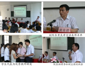 春催桃李满园香,雨润栋梁铸英才 我院庆祝第 27 个教师节暨表彰大会隆重举行 9 月 9 日 下午,我院全体教工和部分学生欢聚一堂,共庆第 27 个教师节。科技楼内花团锦簇,处处欢歌笑语,洋溢着浓浓的节日气氛。出席本次表彰大会的领导和嘉宾有纪少游院长、黄良君副院长、院党...