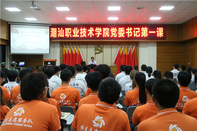 为推动落实学校党组织书记、校长思政课建设第一责任人责任,进一步做好大学生思想政治教育工作,激发广大学生爱国爱党的奋斗精神和家国情怀, 9月23日晚,潮汕职业技术学院2021年秋季学期党委书记第一课在第一报告厅开讲,党委书记、校长齐广武为2020级学生骨干带来《传承伟...
