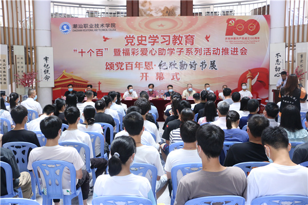 党史学习教育 | 潮汕学院颂党百年恩纪欣勤诗书展开幕 为深入推进党史学习教育,开展庆祝建党百年系列活动, 6月3日下午,潮汕学院在图书馆隆重举行党史学习教育十个百暨福彩爱心助学子系列活动推进会和颂党百年恩-纪欣勤诗书展开幕式。 出席此次开幕式的领导、嘉宾有: 学校...