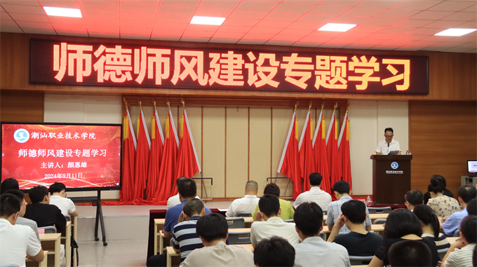 为深入贯彻落实党的二十届三中全会精神,进一步加强师德师风建设,弘扬教师职业道德,营造风清气正的教育环境, 9月11日,潮汕学院在第二报告厅召开师德师风建设专题学习会。 会上,副校长颜惠雄为全体教职员工作以《高校师德师风建设中 对思想政治教育协同、创新、育人的思...
