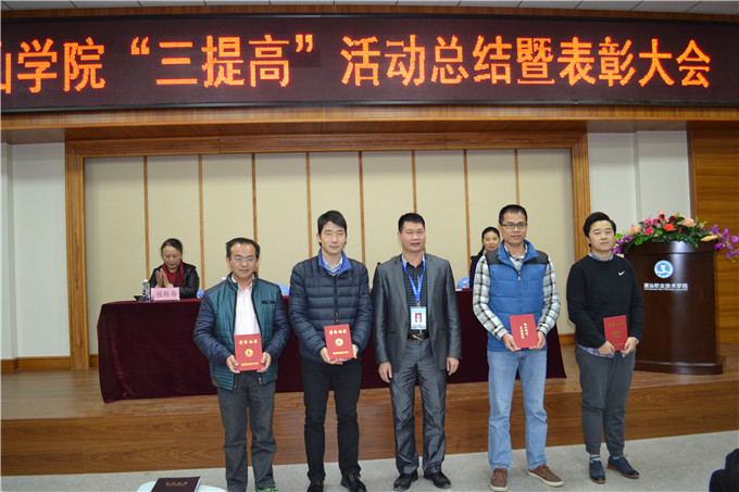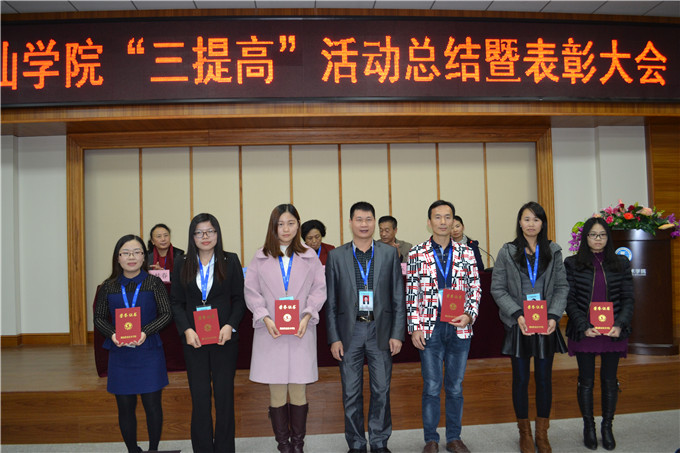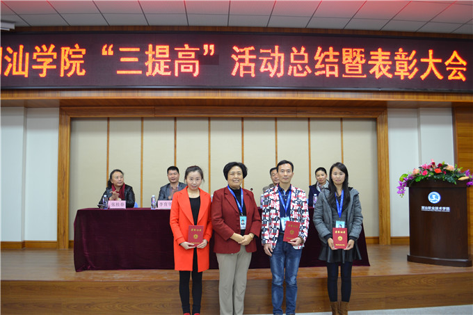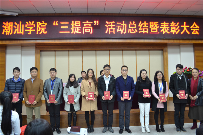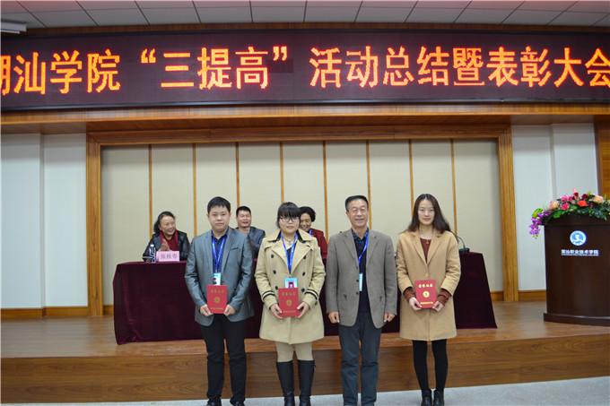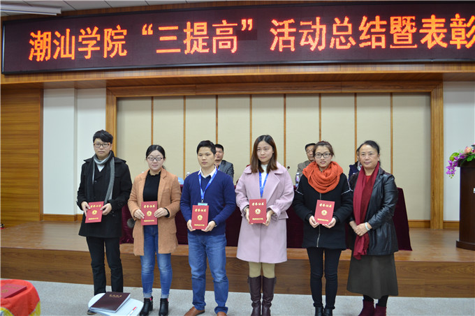2016年12月28日下午,潮汕学院“三提高”活动总结暨表彰大会在第一学术报告厅举行。出席本次会议的领导有党委书记韩淑芳、常务副院长单振东、院长助理李育华及督导室张桂春等,会议由教务处王燕娜副处长主持。 首先,王副处长学院职业资格证书的平均通过率、学生技能竞赛活动、“三说”教学活动及“三优”教学活动等方面做了简要的通报;并从“强化实践教学,提高学院人才培养质量”等方面对本次活动做了高度概括与总结,同时也指出了目前存在的问题与不足,提出了改进的方向与措施。接着,李育华助理宣读《关于“三提高”活动的表彰决定》(粤潮院[2016]77号)文件,由张主任、李助理、韩书记、单副院长等领导依次为获奖人员颁奖。 最后,单副院长发表重要讲话。首先他对获奖人员表示祝贺,对全体教职工对本次活动的付出表示感谢,并肯定了本年度教学工作的成绩。同时,他对全院教学系统人员提出具体要求:一是要求全体人员要尽快解放思想、转变观念、主动适应学院转型发展的需要;二是要顾全大局,舍小理趋大理,舍小家趋大家,舍小利趋大利;三是要服从命令,听从指挥,个人利益要服从学院利益。 ![]() 会议现场 ![]() 王燕娜副处长主持会议 ![]() 李育华助理宣读文件 ![]() 张主任为获奖人员颁奖 ![]() 张主任为获奖人员颁奖 ![]() 李助理为获奖人员颁奖 ![]() 李助理为获奖人员颁奖 ![]() 单副院长为获奖人员颁奖 ![]() 韩书记为获奖人员颁奖 (摄影:黄晓枫)