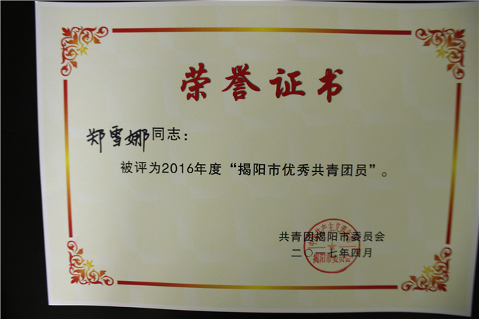 获奖名单如下: (省级) 潮汕职业技术学院团委荣获“广东省五四红旗团委” 许巧芬同志荣获“广东省优秀共青团员”荣誉称号 林沐宇同志荣获“广东省优秀共青团员”荣誉称号 (市级) 陈振明同志荣获“揭阳市优秀基层团干部” 刘任炫同志荣获“揭阳市优秀基层团干部” 吴凯敏同志荣获“揭阳市优秀基层团干部” 黄 霞同志荣获“揭阳市优秀共青团员” 郑雪娜同志荣获“揭阳市优秀共青团员” 陈国中同志荣获“揭阳市优秀共青团员” 李 旋同志荣获“揭阳市优秀共青团员” 许佳楠同志荣获“揭阳市优秀共青团员”