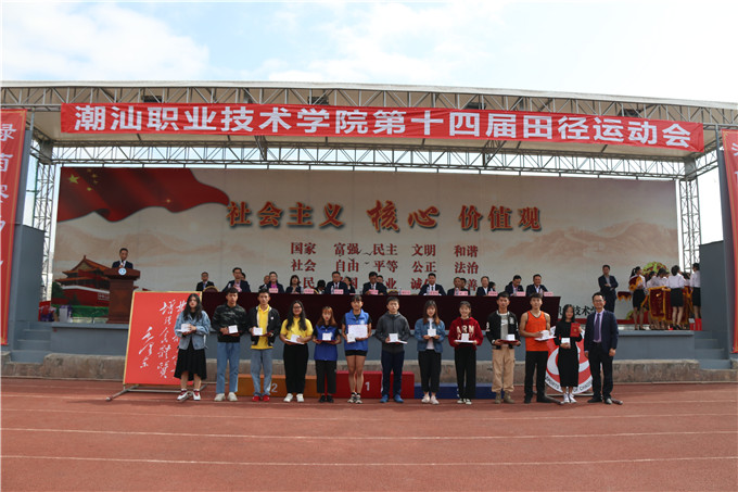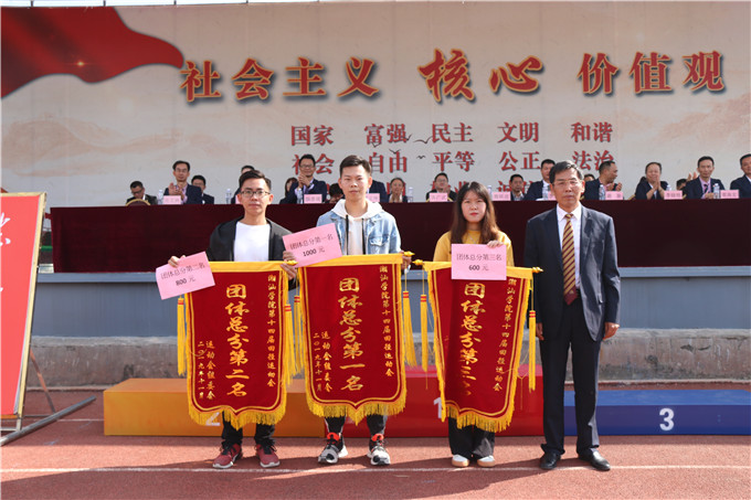 | 11月30日,我院在田径场隆重举行第十四届田径运动会闭幕式,为期两天的运动会圆满落幕。 ![]() 出席闭幕式的领导有:党委书记、院长齐广武、副院长魏跃进、党委副书记罗文坤、党委副书记李育华、院长助理颜惠雄、院长助理谢耿、各二级学院院长、相关部门负责人、各二级学院党总支书记。副院长魏跃进主持闭幕式。 ![]()