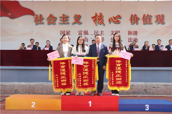 党委副书记罗文坤为获得“体育道德风尚奖”的团体颁奖。 ![]()