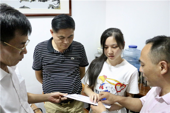 | 8月26日,揭阳市招生办副主任林永忠、普宁市招生办主任张少奋、潮汕职业技术学院党委书记、执行院长齐广武带队前往广东省首例盲人考生杨晓婷家,对杨晓婷同学及其家属进行亲切慰问。齐广武书记亲手为杨晓婷同学送上学院特制的录取通知书。 ![]() 此前,广东省首例盲人考生杨晓婷被潮汕职业技术学院商务英语专业录取,这个假期,杨晓婷同学在北京参加了“视障大学暑期预科班”,为即将到来的大学生活做准备。在假期的尾声,杨晓婷同学收到了一份“特殊的礼物”。 ![]()