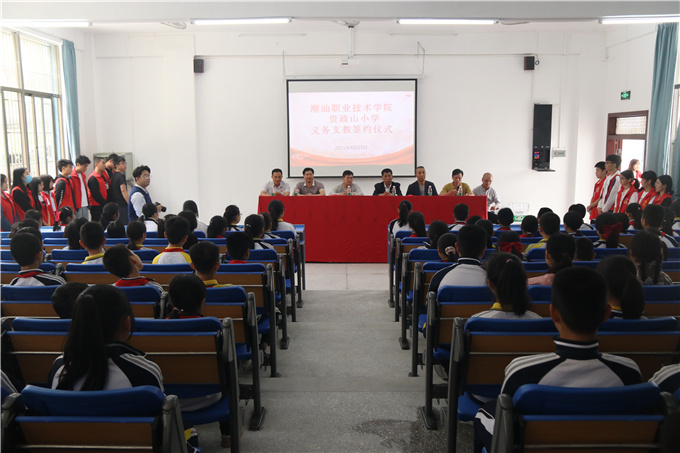 担社会责任 助乡村振兴 潮汕学院与贵政山小学正式签署义务支教协议 教育教书育人 潮汕学院 办学22年来 始终不忘自身的根本责任 在为党和国家 为社会培养人才的同时 心系普宁发展 主动挑起责任 支持乡村教育 助力乡村振兴 为贯彻落实中央和省委关于 建设高质量教育体系和