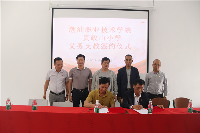 为贯彻落实中央和省委关于建设高质量教育体系和乡村振兴战略工作部署要求,补齐地区基础教育发展短板,促进基础教育高质量发展。4月15日上午,潮汕学院与贵政山小学正式签署义务支教协议,与贵政山小学建立“一对一”帮扶的“结对”伙伴关系,未来,潮汕学院将对贵政山小学提供全方位的教育帮扶。