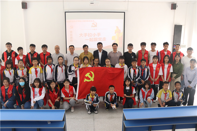 4月15日上午,在校党委的领导下,工商学院党总支以党史学习教育为契机,坚持街、校、社会组织联动,将党史教育渗透到学科德育教学支教活动中,工商学院党总支书记尹华根组织支部全体师生党员和学生骨干一起前往贵政山小学开展“大手牵小手,一起跟党走”党史教育活动,让少先队员们学党史,担使命,扣好人生第一粒纽扣。