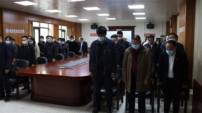 在学校党委统一安排部署下,全体校领导、师生代表集中在会议室、报告厅收听收看追悼大会。各二级学院也以多种形式组织师生收听收看追悼大会。全体师生集体默哀,深切悼念江泽民同志。当天,学校下半旗志哀。
