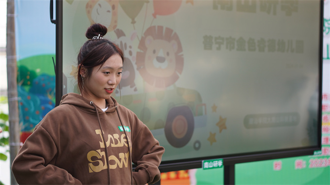 羊羊老师(学校2022级学前教育专业杨晓彤)在讲授课程的过程中,通过律动舞蹈、提问互动等有趣的方式让孩子们通过观察、触摸、轻嗅、品尝感受小番茄的颜色、形状和味道,课堂气氛十分活跃,孩子们从中认识到了水培樱桃番茄的生长过程。