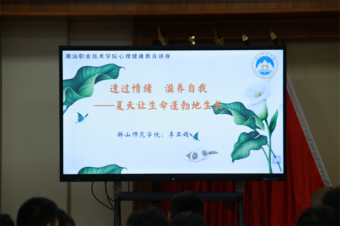 潮汕职院邀请韩山师院李亚娟博士开展心理健康教育讲座为帮助学生缓解在校学习压力、正确调适心理,有效开展心理疏导,提供心理健康保障与支持,5月10日下午,学校党委邀请韩山师范学院心理健康教育与咨询中心副主任李亚娟老师在第一报告厅开展《透过情绪、滋养自我——夏天让生命蓬勃生长》心理健康教育讲座。 ![]()
