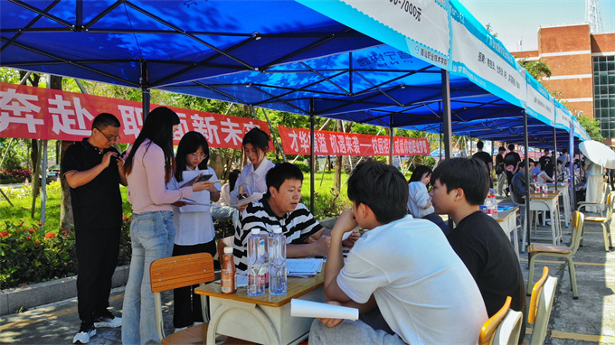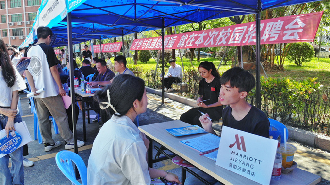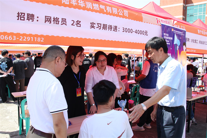 潮汕学院党委书记李育华在接受电视台采访时表示,潮汕学院一直以来非常重视大学生就业工作,也取得了很好的成效,近几年来学校毕业生就业率超过99%。学校一直以来十分重视对学生专业技能和综合素质的培养,用人单位评价学生能适应相应的工作岗位。举办招聘会是用人单位和学生面对面交流一个非常好的方式,期待企业能够从中根据自己的需求择选到有用的人才,也希望我们学校的学生能够找到心仪的工作,双向共奔赴,“职”面新未来! ![]() 学生代表 2022级计算机网络技术专业周海清: 我认为此次招聘会的举办对我们即将步入社会的大学生来说意义重大,今天在现场我看到了很多大型企业,有我心仪的用人单位,我投递了简历。我觉得招聘会的参会企业比较有保障,对较为迷茫的大学生来说也比较安心,同时也有比较多的选择性,相比我们自己去一个一个找,大大地缓解了我们就业的压力,感谢学校搭建的供需平台,让我们有机会和企业面对面交流。 ![]() 企业代表 普宁华润中宏能源有限公司人力资源部门经理邱程先生: 今天我们公司收到了许多简历,感受到了学校学生的积极热情,期待进一步面试,把优秀的学生纳入我们的企业。