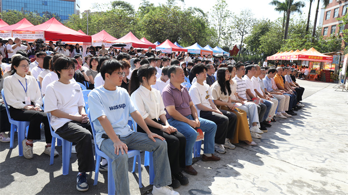 普宁市人力资源和社会保障局局长周少添、副局长王义文、潮汕学院校长曾向昌、党委书记李育华、财务总监罗文坤、副校长谢耿、党委副书记王笃学、普宁市欢创人力资源服务有限公司总经理李壁青出席了招聘会开幕式。 ![]()