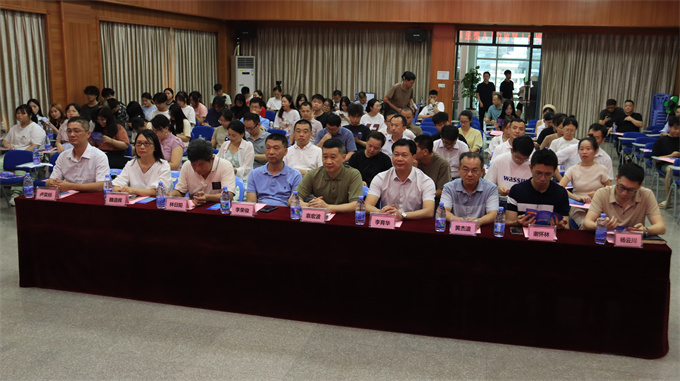 揭阳市工业和信息化局副局长袁宏波、普宁市工业和信息化局总工程师李荣俊、普宁职业技术学校校长林日阳、揭阳市工业和信息化局生产服务业科科长魏道晖、揭阳高新区知识产权协同运营中心副主任杨云川、揭阳市科技金融服务中心副主任卢奕标出席会议。我校党委书记李育华、理工学院院长黄杰波、人文学院党总支书记谢怀林参加活动。还有约80名企业代表应邀参与。