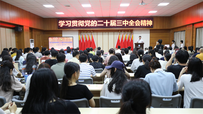 会议的胜利召开,在我校广大师生中引起热烈反响,学校党委积极响应号召,于9月11日召开大会,集体学习贯彻党的二十届三中全会精神。