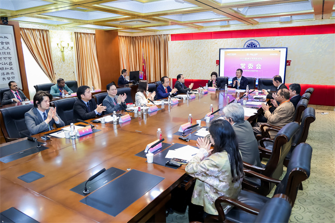 论坛常委会会议、国际教育合作签约仪式及闭幕式于11月22日下午在广东外语外贸大学白云山校区行政楼依次举行。常委会审议并通过亚洲大学校长论坛、亚洲学生暑期项目、亚洲教师工作坊的主办单位,并通过了《2025亚洲大学校长论坛广州宣言》(下称“广州宣言”)。 ![]() 2025亚洲大学校长论坛常委会会议现场 ![]() 纪少游董事长出席常委会会议